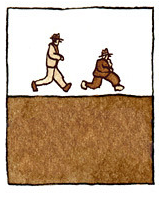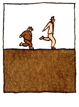 Man and Guy were spotted together for the first time on the pages of Eiland (leaving a house in Dalmatia). There are earlier sightings of Man alone (with suitcase), for instance by Piero della Francesca (around 1470).